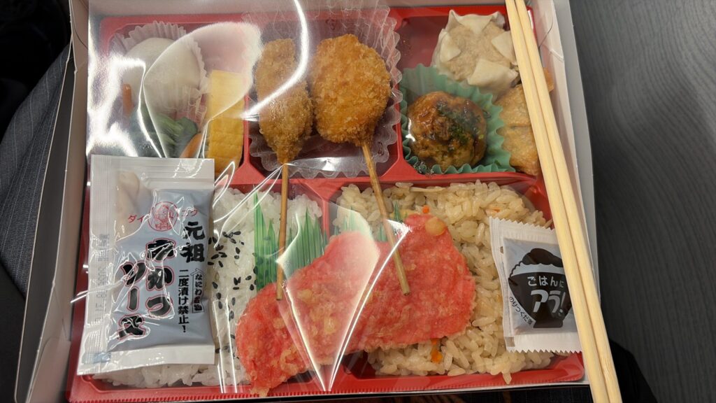 仕事が終わって夕方帰りの新幹線。お弁当は新幹線のお供として迷わず購入。